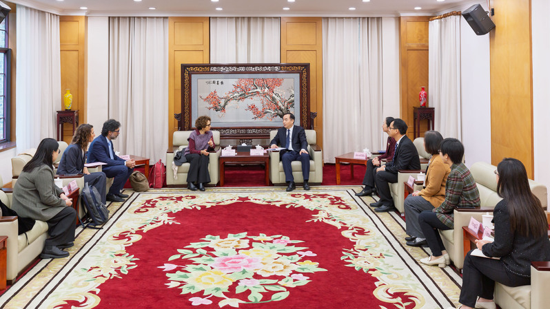 张晓宏首先代表学校向李集雅一行表示热烈欢迎,并回顾了两校自缔结校际合作关系以来取得的成果。他指出,“双城三桥”合作科研计划依托Erasmus+项目的经费资助顺利展开;先后有20余名威尼斯大学的学生通过交换生项目到苏州大学研修学习;此外,经过多年筹备,“威尼斯—苏州—丝路上的水城”图片展也圆满落幕。展望未来,他希望两校能在现有合作的基础上,进一步拓宽合作领域,特别是在文化遗产修复与保护、短期学生交流以及联合培养等方面建立更加紧密的合作,促进双方在人才培养、学科建设等方面的共同发展。