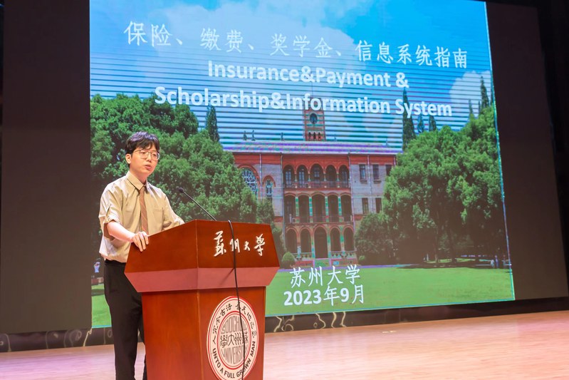 李孝峰代表苏州大学欢迎来自世界各地的国际新生们,他从学校历史、学科发展、人才培养等方面介绍了学校的概况。他希望同学们努力学习知识,主动了解中国文化,积极分享中国经历,成为国际友谊的桥梁纽带。