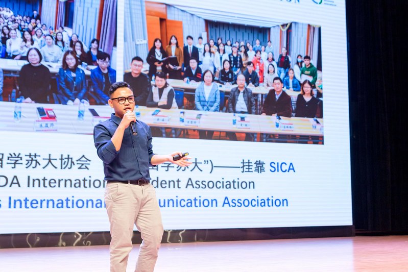 活动最后, “留学苏大”协会副会长,来自印度尼西亚的他路同学向同学们介绍了协会的发展历史、组织架构,以及近年来举办的特色活动。他表示,中外融合是“留学苏大”协会最大的特色,希望有更多的国际新生加入协会,和中国学生一起推动中外文化交流。