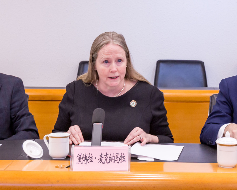 麦克纳马拉校长感谢张晓宏书记的热情接待和欧博仁大使、莫大维总领事的鼎力支持。她表示,作为中爱高等教育合作的里程碑,国际创新药学院的成立凝聚了爱尔兰皇家外科医学院与苏州大学十余年的深度合作成果。在双方政府的共同支持和见证下,经过两校的不懈努力,学院的硬件设施逐步完善、招生任务如期完成、教学工作顺利开展。期待未来与苏州大学继续携手,为学生提供优质的课程和专业,助力学生在学术研究和职业发展上取得卓越成就,为全球医药创新做出重要贡献。