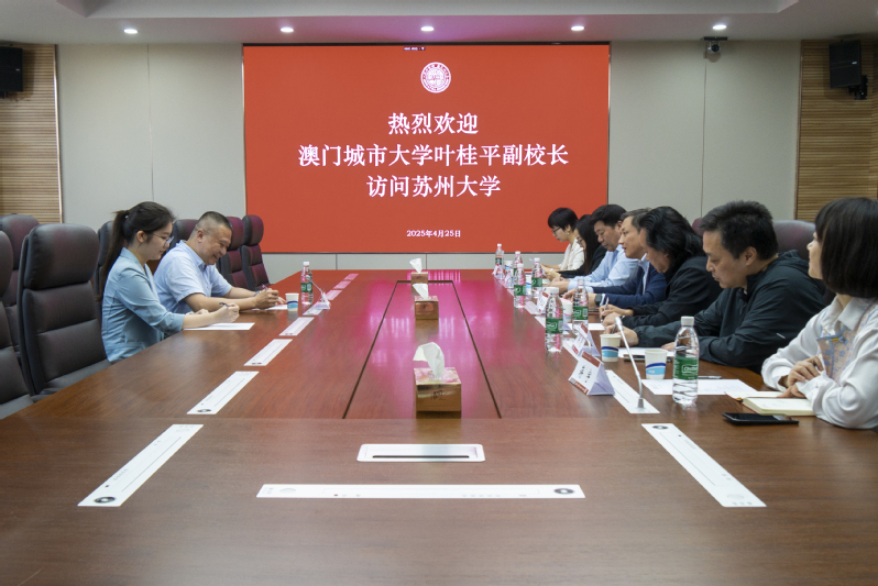 4月25日下午,澳门城市大学副校长叶桂平访问我校。我校副校长张正彪在独墅湖校区亲切会见了来宾。我校金螳螂建筑学院、研究生院、人力资源处、科学技术研究院、港澳台办公室负责人等共同出席了会谈。双方就苏州大学与澳门城市大学的合作交流现状及未来规划进行了深入交流。