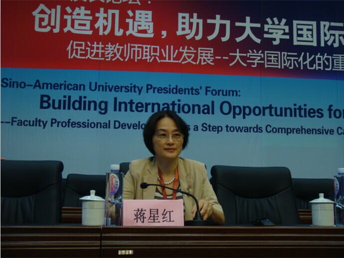 我校蒋星红副校长应邀在中美大学校长论坛:“促进教师职业发展——大学国际化的重要步骤”上作了题为“加强国际人才队伍建设,推动学校内涵发展“的演讲,并与相关美方大学校长在毕业典礼上共同为我校14名本科生颁发了中美两所大学的学位证书和毕业证书,14名毕业生中还有3名同学获得了优秀毕业生称号。