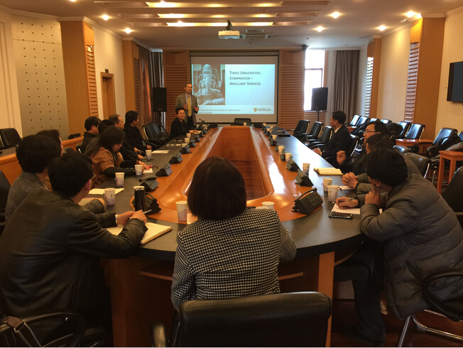 杨一心副校长就学校规划、后勤管理等议题与Angerilli副校长进行深入交流。访问期间,Angerilli副校长还与我校后勤管理处科以上干部进行了交流,介绍了滑铁卢大学在后勤管理、师生服务等方面的做法,并回答了大家的提问。