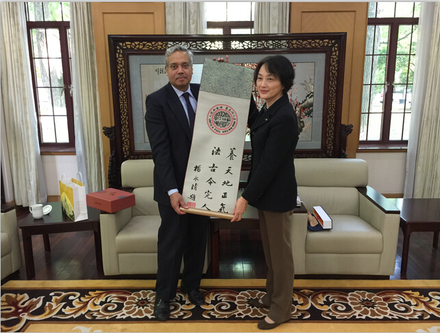蒋星红向史耐恩总领事介绍了我校的基本情况以及我校印度籍留学生的学习和生活情况。她说:我校印度籍医学专业留学生的数量位居江苏省高校之首,这些学生在苏大毕业后,大都回国从事医学工作,有的毕业生甚至取得了美国、香港等地的执业医师资格。蒋星红希望这些印度留学生不仅能在各自的工作岗位上事业有成,更能成为中印友好交流的使者。
