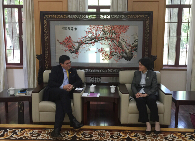 蒋星红向首次来访的安明远总领事介绍了我校历史沿革、目前的办学现状以及国际化发展情况,她表示,苏州大学作为一所国家重点建设的综合性高校,愿意与智利总领事馆和智利高校在学生培养、文化交流、学术和科研等领域开展合作。