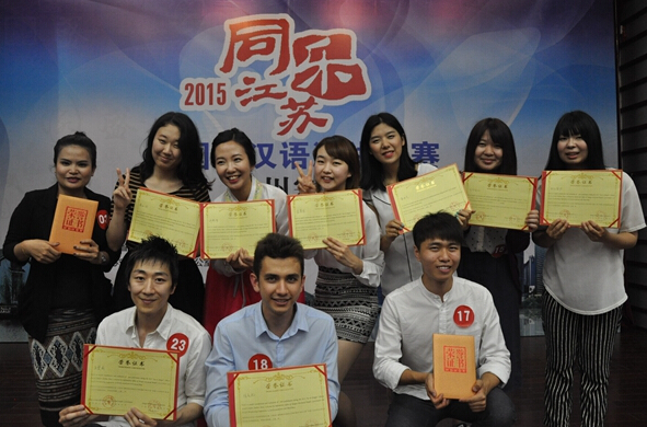 5月29日下午,由江苏省政府新闻办公室和江苏省教育厅联合主办、江苏省广播电视总台承办的2015“同乐江苏”外国人汉语演讲苏州赛区比赛在我校本部学术报告厅举行。由扬州、镇江、常州、无锡和苏州等地高校选派的24名外国留学生选手参加了本场比赛,参赛选手分别来自澳大利亚、乌克兰、马来西亚、毛里求斯、泰国、韩国、日本、印度、老挝和刚果等十多个国家。