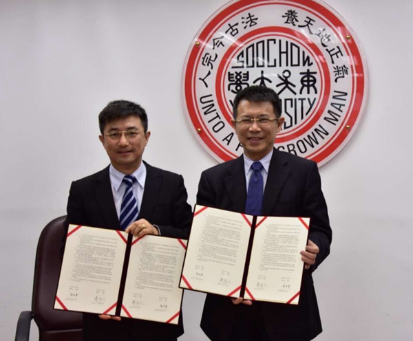 交流会上,双方就如何扩大合作交流展开了深入探讨,熊思东和潘维大共同签署了《苏州大学与东吴大学人文社会科学研究协作倡议书》。