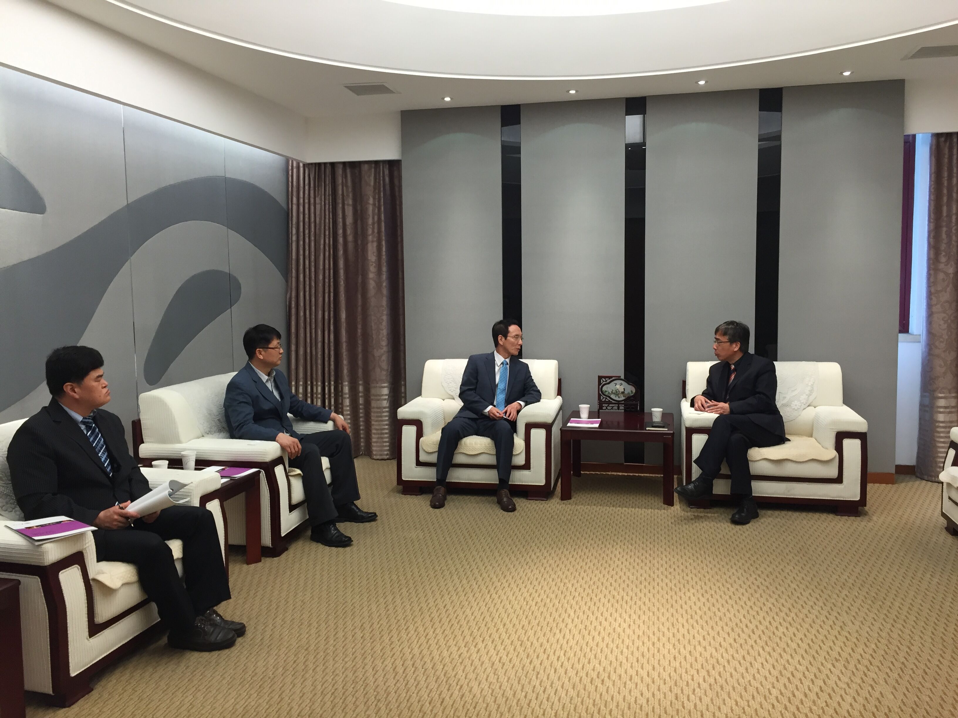 5月13日上午,韩国昌源大学产学企划室室长章宁五一行访问我校,国际合作交流处处长黄兴接待了章宁五室长一行。