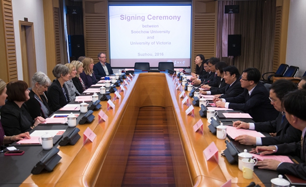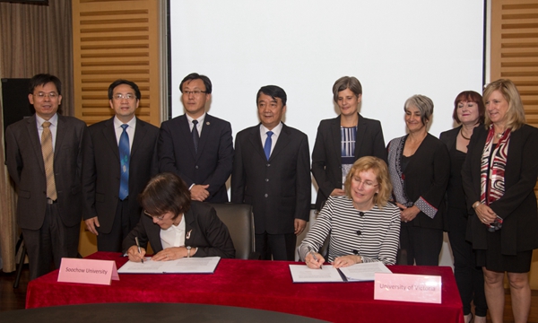 随后,在全体与会人员的见证下,蒋星红副校长和查雷特副校长分别代表苏州大学和维多利亚大学签署了校际合作协议,将两校间的合作推向了新的起点。会后,与会人员在红楼前合影留念。