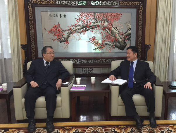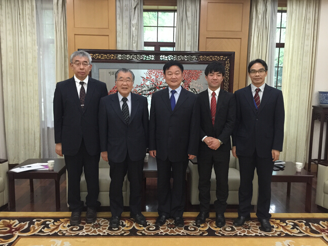 6月16日上午,日本天理大学校长饭降政彦教授、国际学部朱鹏教授和国际交流部斋藤俊行一行三人访问我校,袁银男副校长在红楼会议中心亲切会见了来访的客人,国际合作交流处副处长陆惠星和外国语学院日语系系主任徐卫等陪同接待。