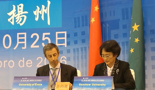 随后,蒋星红与克莱斯玛共同签署了校际合作备忘录。两校表示将共同努力,积极推动师生互访,进一步增进文化交流,着力培养语言人才,为江苏-澳门·葡语国家高校合作联盟的发展做出贡献。