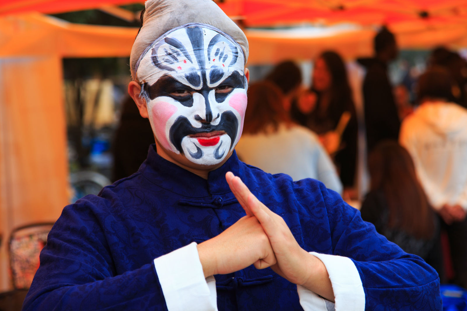 中国传统文化展位由苏州工艺美院和钟楼社区组织苏州当地的民间手工艺和书画艺人以及戏曲爱好者开设,展示并供中外学生体验中国传统文化。