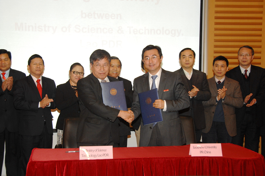 随后,熊思东校长代表学校与老挝科技部签署了科技合作备忘录。该备忘录旨在促进科学与技术的发展与研究,加强科学、技术与创新管理的能力建设。根据协议,双方将加强科学、技术与创新管理的能力建设;在生态、生物、再生能源、新材料、计算机与电子科技、蚕桑与丝绸加工技术和高科技产业发展等方面进行联合科研,组织联合培训课程、工作坊和研讨会。