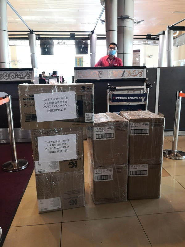 4.我校向马来西亚砂拉越州地方政府回赠2000只口罩: