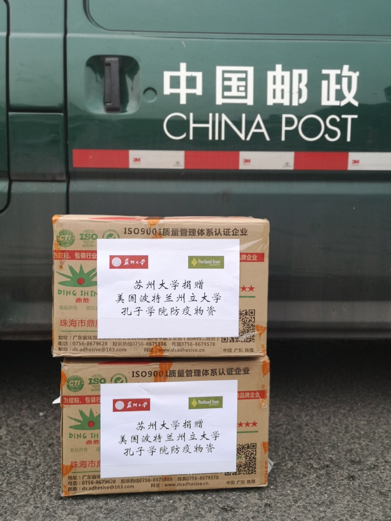 3月12日,我校疫情防控领导小组副组长、保障工作组组长、党委常委周高总会计师紧急调配1500只医用级防护口罩,并在第一时间寄往波特兰州立大学孔子学院,与之一起寄出的是全体苏大人的祝福和期盼:愿全体海外汉语教师健康平安、无恙归来!