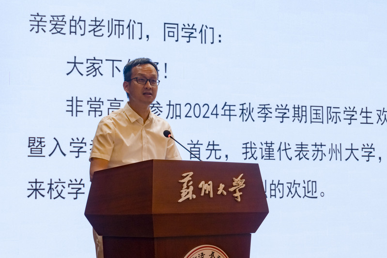 夏骏代表苏州大学各留学生培养单位,给国际新生们送出愿景祝福。他希望同学们在苏州大学的时光精彩而靓丽,精进学业,广结朋友,成为文化交汇融通的使者。苏大的每一个教师,都将是学生们在校期间的陪伴者、支持者。