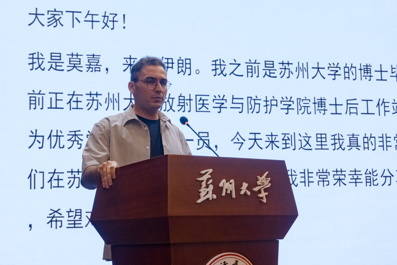 新生代表—文学院的波黑籍硕士学生马一诺,校友代表—毕业于商学院且在苏州某企业就职的意大利籍硕士学生马蔺,以及毕业于苏州医学院,现在放射医学与防护学院工作的伊朗籍博士后莫嘉,分别结合自身经历,就学习方法、文化适应、实习就业、科研学术等方面分享了经验,并向新同学们送出美好祝愿。