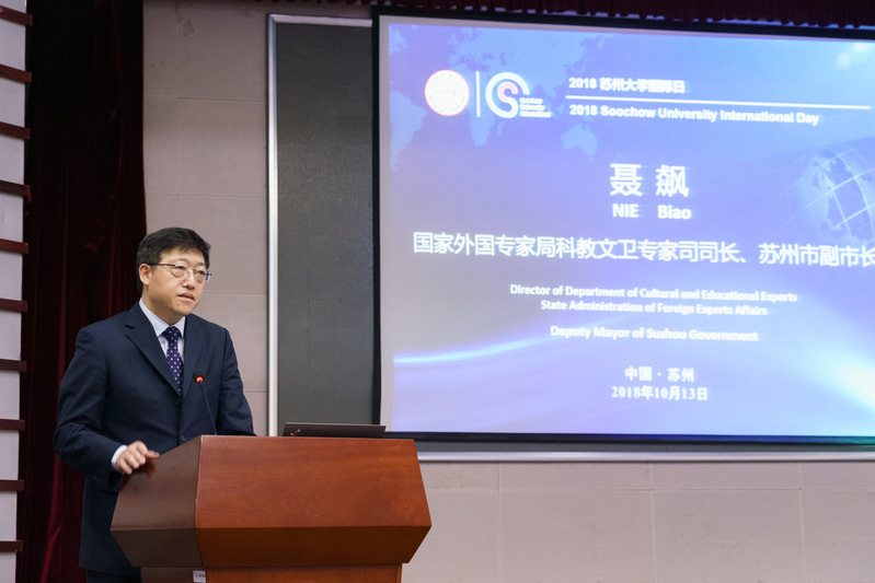 聂飙司长在讲话中指出,近年来苏州大学将“高层次人才队伍建设工作”提升至前所未有的战略高度,在“人才强校战略”的指引下,从海外引进了一大批具有国际视野和高水平的领军人才,有效地提升了学校办学的整体水平,为服务国家战略、地方社会经济的发展做出了突出的贡献。他表示,人才的国际化是支撑国家发展非常重要的战略。在新时代的背景下,发展是第一要务,人才是第一资源,创新是第一动力,这无疑对高等教育也提出了新任务和新要求。高校是高端引智工作的重镇,新时代的高校应准确把握国家对外开放的新形势,以科技、人才交流合作的规律,进一步聚焦国家重大战略需求、科技创新和社会发展需要,不断完善管理的运行机制,积极引进海外人才并有效发挥他们在学科创新中的独特作用,推动国际人才交流合作生效升级。