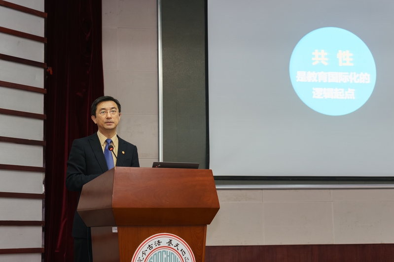 熊思东校长作了题为《新时代的苏州大学国际化战略》的主旨报告。他表示,国际化是大学的基本特征,是世界高等教育发展的潮流,是大学服务国家战略的使命要求,是新时代赋予高等教育的“新职能”,也是实现大学自身改革发展的需要,已经成为现代大学的一种生存方式。当前,国际化是苏州大学的策略和选择,学校以国际化为改革引领,在国际标准中寻找自身位置、检验发展成效、明晰未来方向,更好地把握新时代的发展机遇。熊校长介绍了我校推进国际化的征程和愿景。他指出,国际化是苏州大学与生俱来的办学基因,一直以来学校也把国际化作为重大发展战略,在国际合作关系、师资队伍国际化、人才培养国际化、科学研究国际化、境外办学等方面取得了可喜的成绩。未来学校将以服务国家战略,实现内涵式、高质量的发展为发展思路,实施四大行动:不断开拓资源,建立渠道;理顺机制,提升能力;增泵加压,提高国际合作动力;开发项目,完善服务。学校将充分把握新时代的使命和机遇,通过实施“国际知名带动国内一流”的国际化发展战略,努力拓展国际化办学空间,打造国际化办学特色,提升国际化办学水平,全面融入全球学术创新体系,提升国际知名度和影响力,早日建成国内一流、国际知名高水平研究型大学,最终成为人民满意、国际认可、世界尊重的大学。