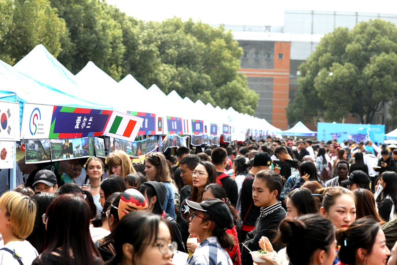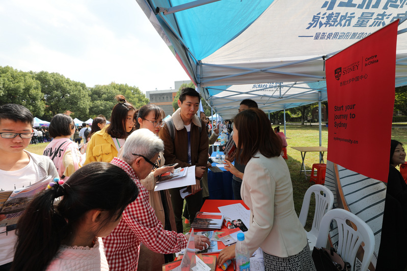 海外教育展和中外学生嘉年华在钟楼南草坪举行。活动现场,人头攒动,热闹非凡,三千余人参加了活动。