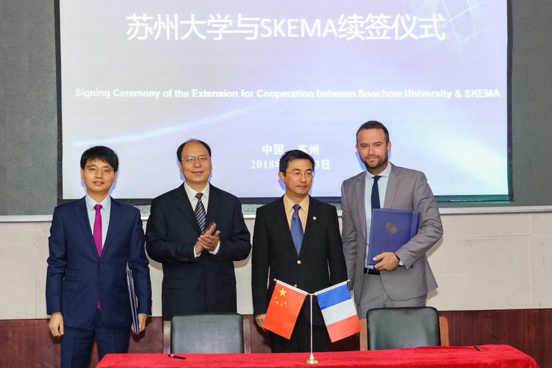 论坛上,《苏州大学2017年国际化白皮书》正式对外发布。在与会嘉宾的见证下,江苏省教育国际交流中心主任田一聚和我校国际合作交流处处长张桥签署战略合作协议。SKEMA商学院中国校区校长杜睿天和张桥续签两校合作备忘录和学生联合培养合作协议。