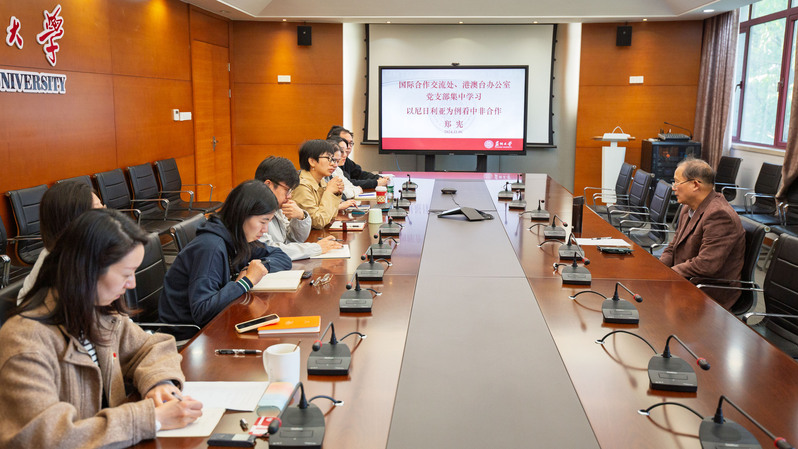党支部副书记朱履骅带领大家回顾总结了我校与非洲高校的合作交流情况。2010年,我校入选教育部“中非高校20+20合作计划”,协助尼日利亚拉各斯大学建设中国学专业,已成功培养了近百名优秀的中国学本科人才,不仅填补了尼日利亚高等教育学科的空白,还通过增进非洲学生对中国语言文化的深入理解,促进了中非友谊的发展。今年5月,我校入选教育部“中非高校百校合作计划”中方成员高校以及“中非大学联盟”交流机制中方成员高校,致力于在百校合作计划与联盟交流机制的框架下拓展对非交流的深度和广度。