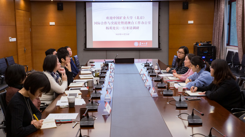 11月24日上午,中国矿业大学(北京)国际合作与交流处处长杨英一行来我处调研,双方在天赐庄校区怡远楼402会议室举行座谈会。国际合作交流处副处长朱履骅、资虹,港澳台办公室副主任高玮玮出席座谈。会议由资虹副处长主持。