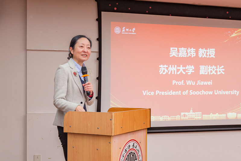 吴嘉炜充分肯定了本年度我校在来华留学工作方面取得的成绩,并对获得表彰的优秀国际学生表示祝贺。她指出,学校高度重视培养具有国际视野和全球竞争力的人才,将继续提供广阔的发展平台助力大家的学习和生活。期待国际学生们在苏大学有所成,传播中国好声音,将知识、经验以及对中国的理解和友谊,带回自己的国家,带到世界各地,真正成为连接中国与世界的桥梁。