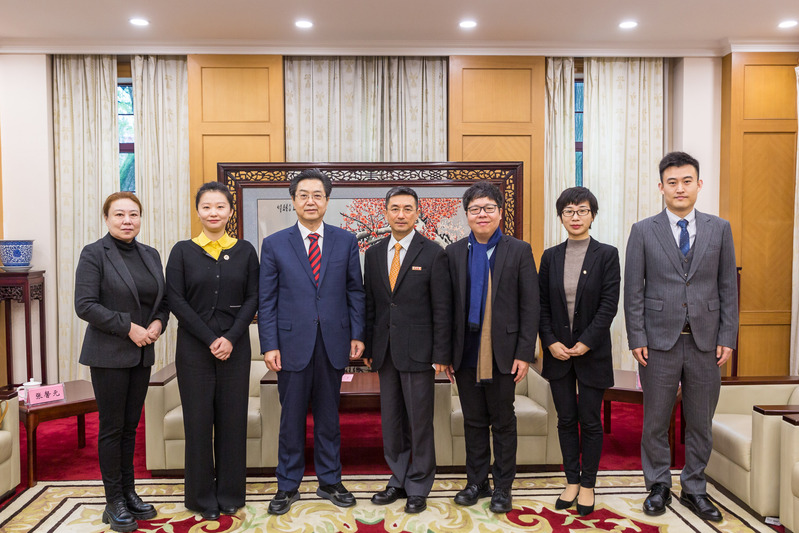 1月6日上午,联合国和平大学校董、中国国际跨国公司促进会常务副会长张笑宇一行来访我校,我校校长熊思东在红楼会议中心会见来宾。