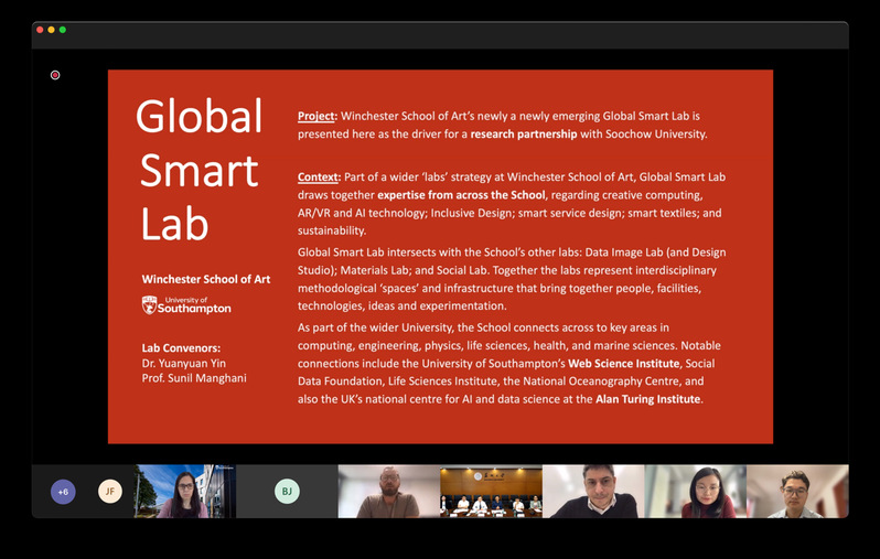 交流会上,首先双方副校长各自介绍了学校的基本情况,特别强调了在科研方面的实力和特色。接着,Sunil Manghani介绍了南安正在重点建设的集教育、科研和企业合作一体的全球智能实验室(Global Smart Lab)项目,Luna Jiang对双方近期在国际合作方面取得的最新成果进行了总结,特别是两校在时尚设计、面料设计等专业方向的“4+1”联合培养项目的成功启动。随后,双方就“4+1”联合培养项目举行云端签约仪式,这项合作将于今年9月正式启动,届时为我校艺术类国际化人才招生和培养工作注入强劲动力。