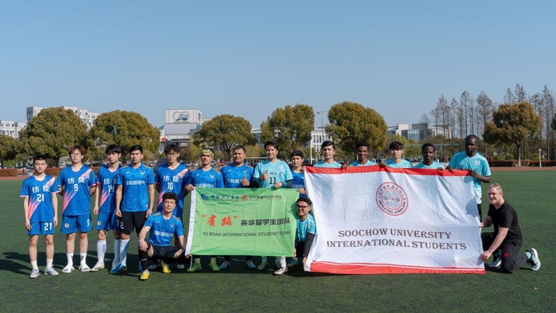 随后,两校国际学生进行了足球友谊比赛。