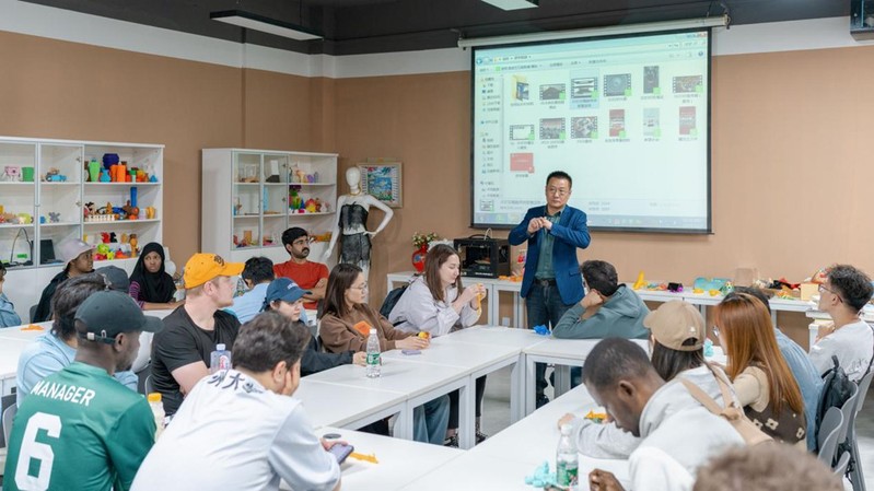 之后,两校学生来到常熟理工学院,在纺织服装与设计学院体验了3D设计打印技术。实验室内丰富的展品充分显示了科技与艺术的完美结合,引起了各国学生的浓厚兴趣。