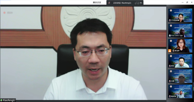 李孝峰对所有参加培训项目的同学们表示热烈欢迎,并向一直以来为苏州大学与拉各斯大学合作交流给予巨大支持和帮助的Oni教授表示诚挚的敬意。他强调,苏州大学十分重视国际学生的教育,一方面国际化是苏州大学的重要发展战略之一,另一方面国际学生是苏州大学与世界交流合作的关键纽带。苏州大学作为教育部“中非高校20+20合作计划”中方入选高校,历来重视与非洲高校的合作。2020年以来,全球爆发的疫情暂时阻隔了国际学生到中国来求学的脚步,在各方关心和支持下,苏州大学和拉各斯大学等多所高校共同克服新冠疫情带来的不利影响,苏州大学文学院从本学期开始举办国际学生赋能提升培训项目,让苏州大学全体国际学生可以在云端相聚,对中国传统文化以及当代社会发展有更深入的理解和认识。他提前祝愿所有老师和同学们中秋快乐,也祝愿本次国际学生赋能提升培训项目取得圆满成功。