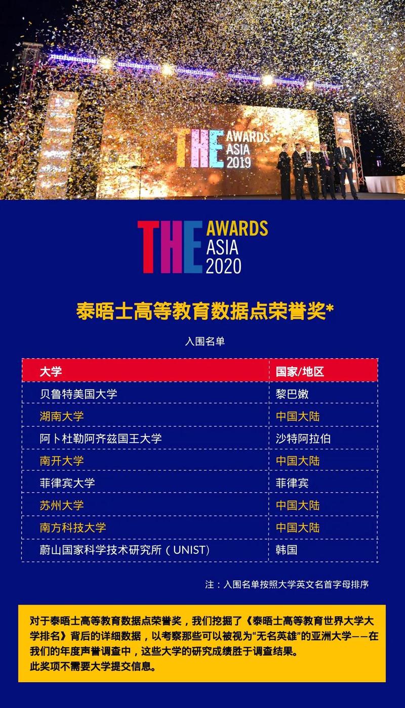 我校荣获2020泰晤士高等教育亚洲大奖两项提名