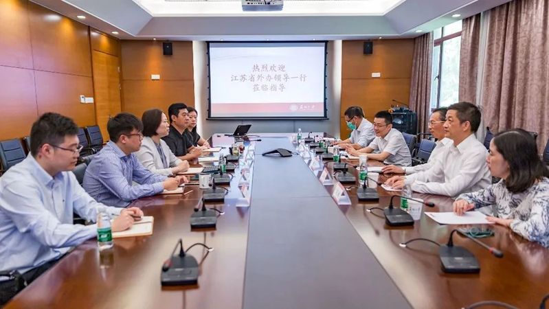 9月29日上午,江苏省外办党组成员、对外友好协会副会长钱文华、外事管理处副处长吴丹、一级主任科员王芬,苏州市外办副主任洪军、出国来华管理处处长周昊、外事翻译中心副主任吴健来等来我校调研国际化工作。我校国际合作交流处副处长朱履骅等出席调研会。