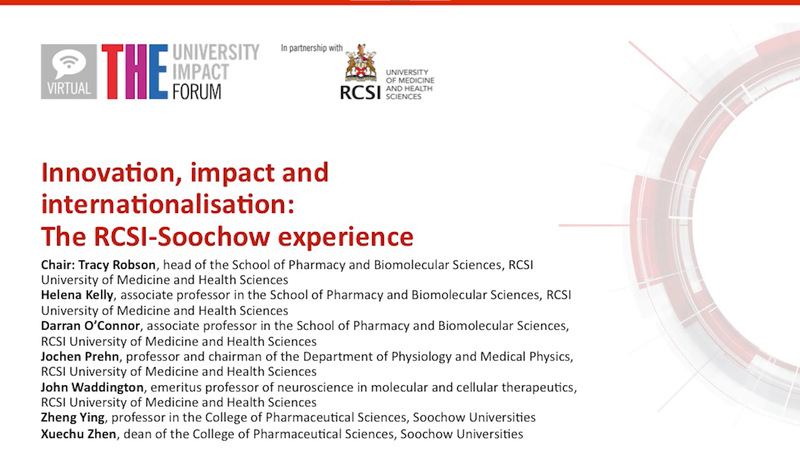 泰晤士教育(THE)主办的为期两天的“大学影响力”论坛于7月6日-8日在线举行。该论坛紧扣联合国可持续发展目标2030中的第三个目标(SDG3)“Good Health and Well-being(健康与福祉)”,探讨高等教育机构在全球卫生与健康事业中发挥的作用。本次论坛由爱尔兰皇家医科大学(RSCI)承办,我校医学部药学院应邀共同主办分论坛“Innovation, Impact and Internationalization :The RCSI- Soochow Experience”(创新、影响和国际化:RCSI – 苏大经验)。