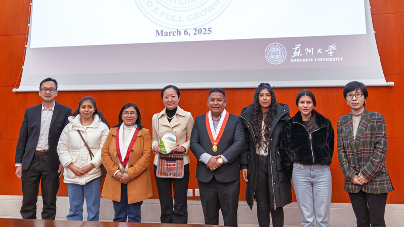 贾克琳·乌加特与埃斯德拉斯·梅迪纳高度评价了苏州大学在人才培养和科研创新方面的成就,并分享了秘鲁高等教育体系的特点。他们提出,希望借鉴苏大经验,开展多种形式的师生交流活动,促进两国青年学生与学者互动,以教育为纽带,联动地方资源,携手推动中秘科技文化合作。